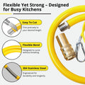 ✔ Flexible & Durable Design—This gas hose, Featuring a stainless steel braided layer, provides extra protection against wear, kinks, and external damage.